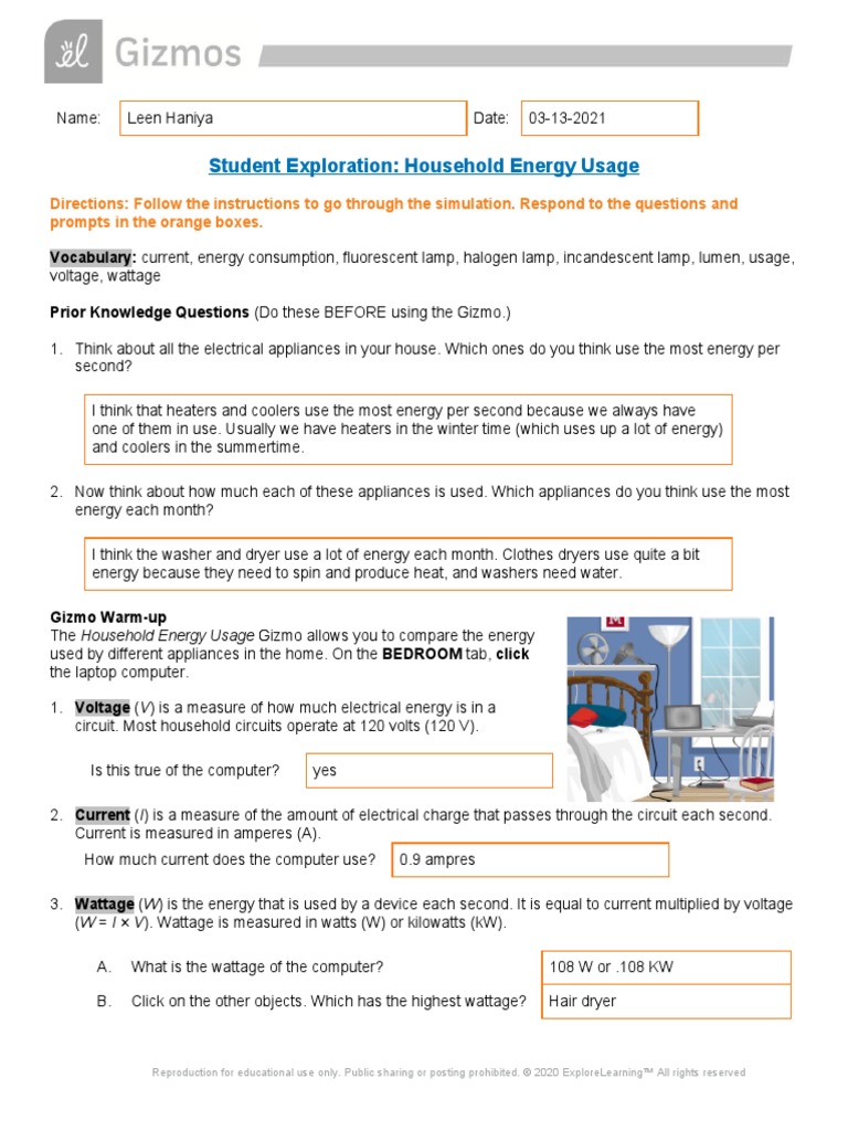 Household Energy Usage Gizmo - Activity A Comparing Light Get The Gizmo Ready Chegg Com / Jul 29, 2021 · find all the latest news on the environment and climate change from the telegraph.. And in the agency world. Energy usage in the household is less than the energy generated and excess is exported to the grid. 1 kwh is equal to 1000 watts, w, delivered continuously for 3600 s (1 h). Jul 29, 2021 · find all the latest news on the environment and climate change from the telegraph. An energy unit used by electric companies to measure energy sales: